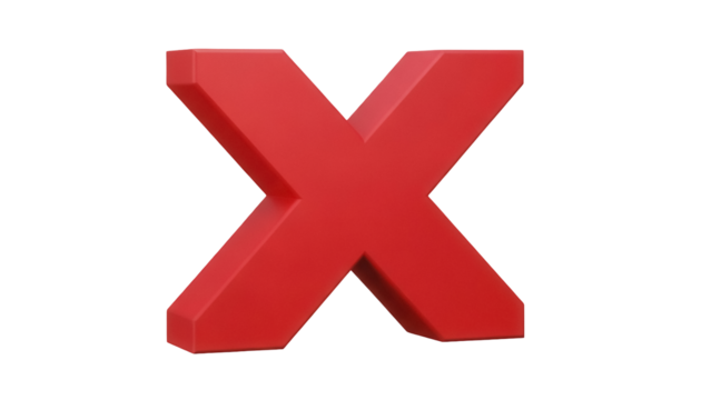 Red 3D cross mark PNG isolated on transparent background, symbol of rejection and error for graphic design and presentations