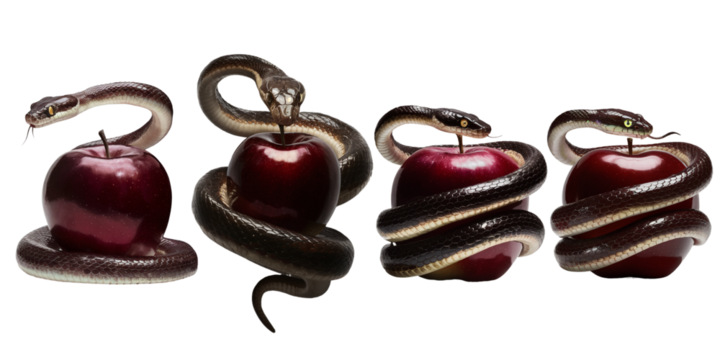 The forbidden fruit a red apple and a snake isolated on transparent background