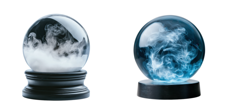 set of Crystal ball with a swirling mist inside isolated on a transparent background