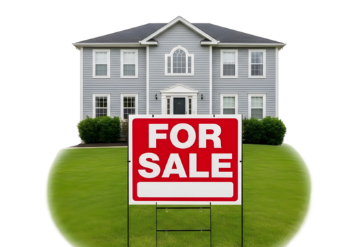 house with for sale sign isolated on transparent background