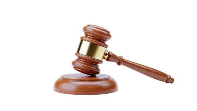 Wooden gavel and dollar symbol on transparent background representing legal monetary decisions.