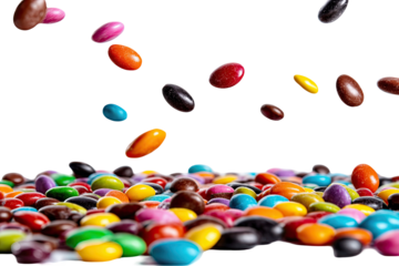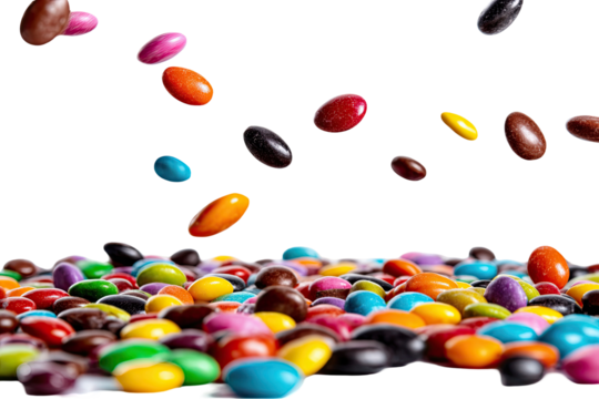 Assortment of colorful, oval-shaped candy pieces cascading against a black background