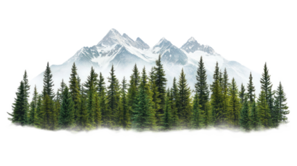 Snowy pine forest on transparent background for seasonal design
