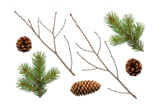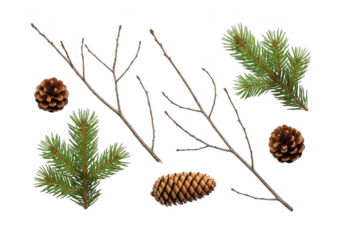 Winter nature elements pine cones and branches on black background