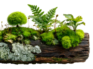 Forest floor with ferns and log isolated on transparent background