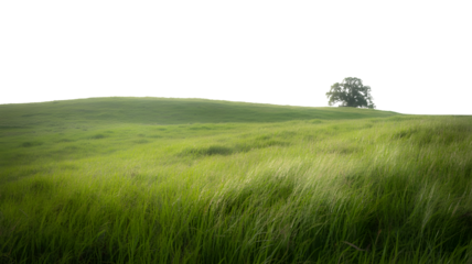 Vibrant green grass field on transparent background
