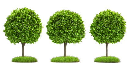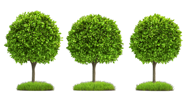 a set of trees and bushes with green grass on a transparent background, PNG image, PNG file, Generative art.