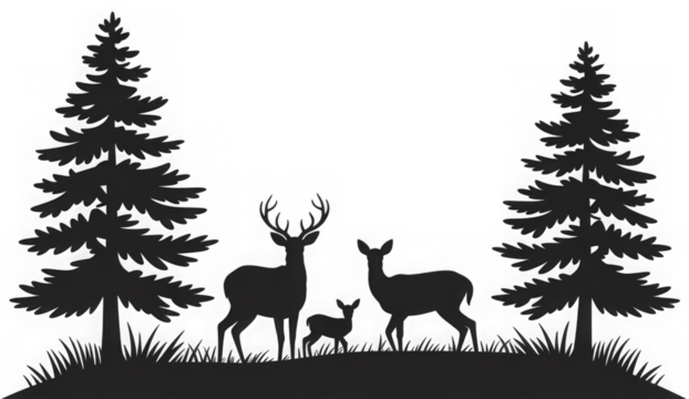 Vector forest and deer family
