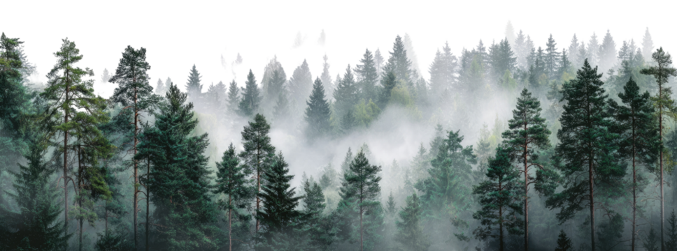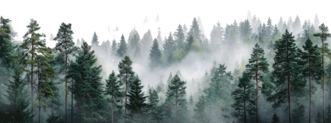 Digital forest of green fir trees with transparent background