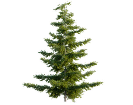 Tsuga heterophylla tree, front view, cutout, transparent background, isolate, architecture visualization, Realistic Fir Tree with Lush Green Foliage – Perfect for Seasonal Designs
