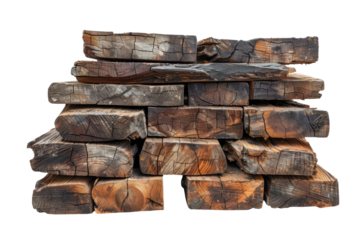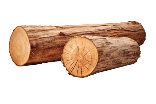 Logging operation wood stacking in forest natural environment. Isolated on transparent background, png.