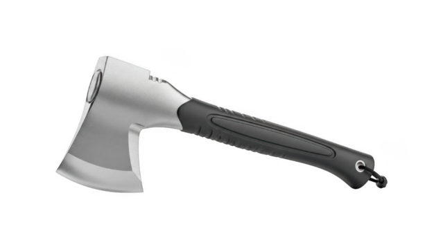 Axe with wooden handle and black grip, tool for chopping and splitting
