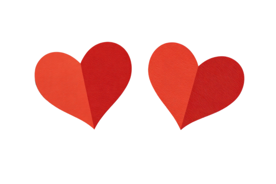 Two vibrant red heart shapes, designed to look like folded paper, set against a black backdrop