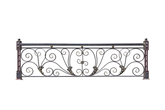 Set of rustic forged metal decorative hardware with rough texture on a transparent background