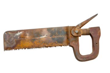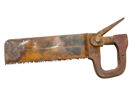 Rusty antique hand saw with clamp handle