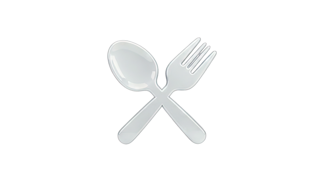 Transparent dining theme with “enjoy” text on plate and cutlery art