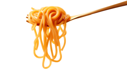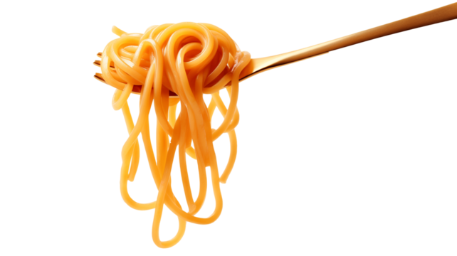 Single fork twirling a portion of spaghetti, isolated on transparent background.