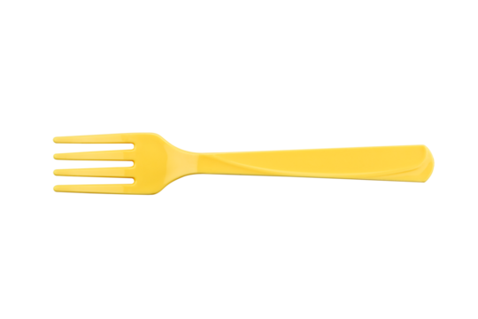 Yellow plastic fork isolated on white isolated background with clipping path.