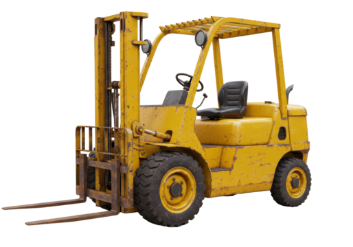 High-resolution forklift illustration isolated on transparent background for industrial and warehouse logistics design projects- ideal for digital and print use in manufacturing and heavy machinery