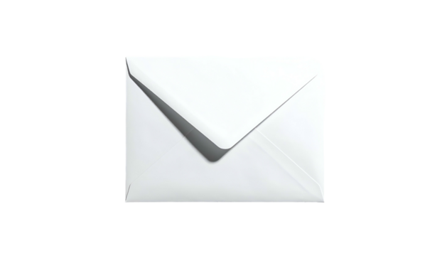 A bright white closed envelope against a black background. Sharp shadows and subtle textures