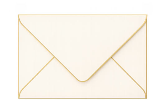 Elegant white envelope with golden border on transparent background