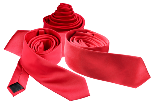 Closeup of a vibrant red satin bow tie isolated on a pure transparent background