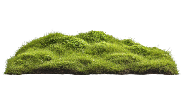 Lush green grass patch forming a small hill on transparent background