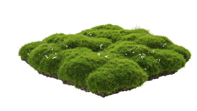 Lush green moss and grass patch forming a natural landscape mound with soft texture and organic growth