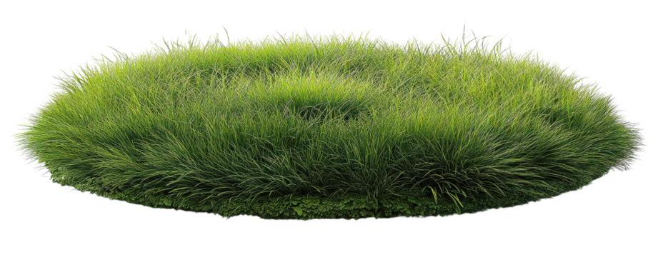 Lush green grass forms soft, rolling hills, creating a serene grassland landscape set against a pure white background. This isolated setting highlights nature's tranquility and simplicity
