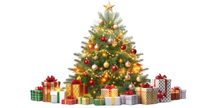 Christmas tree with colorful presents on white isolated on a transparent background gifts holiday 1