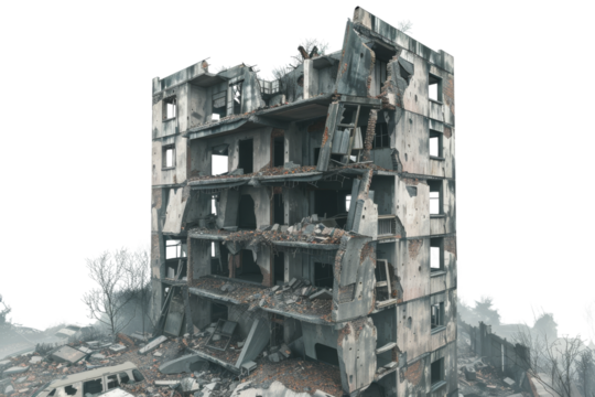 War-Torn Cityscape with Devastated Buildings cut out transparent isolated on white background PNG file