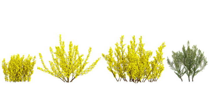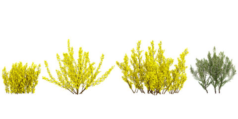 Forsythia x intermedia Golden Bells tree, front view, cutout, transparent background, isolate, Lush green bush with vibrant foliage adds natural beauty to any design