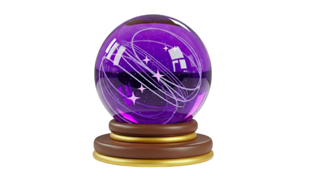 Purple crystal ball on stand isolated on transparent background