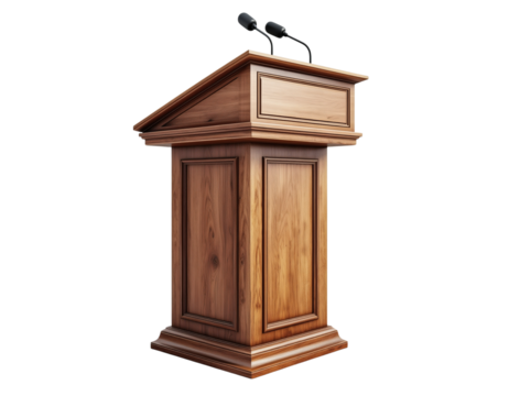 Three microphones on a podium isolated on transparent background