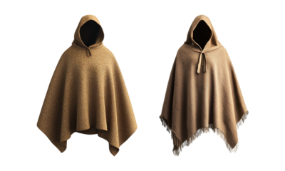 Set of wool poncho with hood isolated on transparent background, in PNG format, cut out