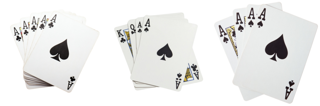 Digital illustration of four ace playing cards on transparent background