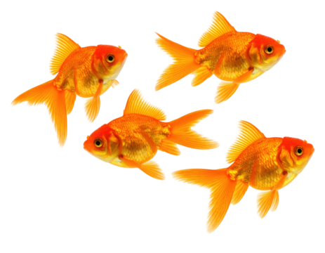 Four honeybees flying in different directions isolated on transparent background