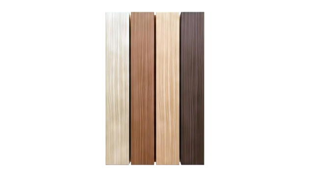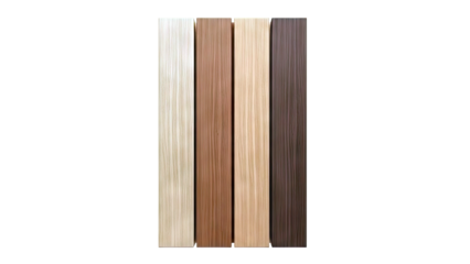 Four wood panels with grooved texture in varying shades