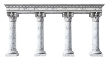 Four white marble pillars isolated on transparent background
