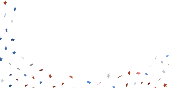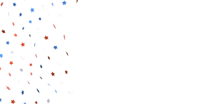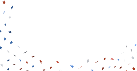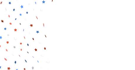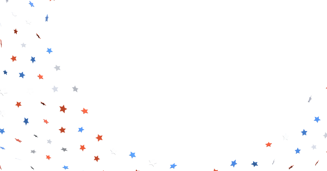 Festive background with confetti in the shape of stars in the color of the American flag.