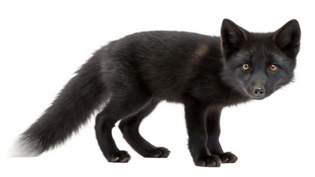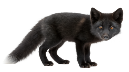 Photo of a curious young fox cub stands on a plain transparent background, its reddishbrown fur and alert expression making it an adorable subject