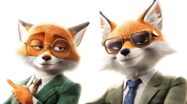 Friendly fox wearing suit, showcasing charming expression, stands out against transparency background. This unique character blends professionalism with playful touch, making it engaging visual