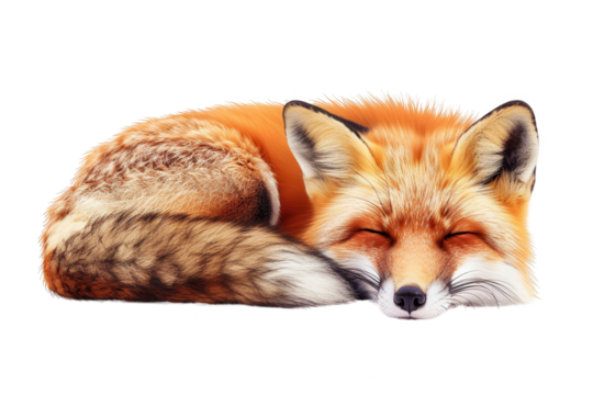 Adorable sleeping fox with vibrant orange fur, nestled peacefully in a cozy pose, showcasing its natural beauty and tranquility.