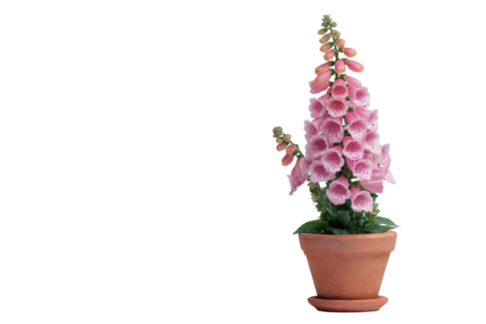 Pink foxglove plant in pot on transparent background