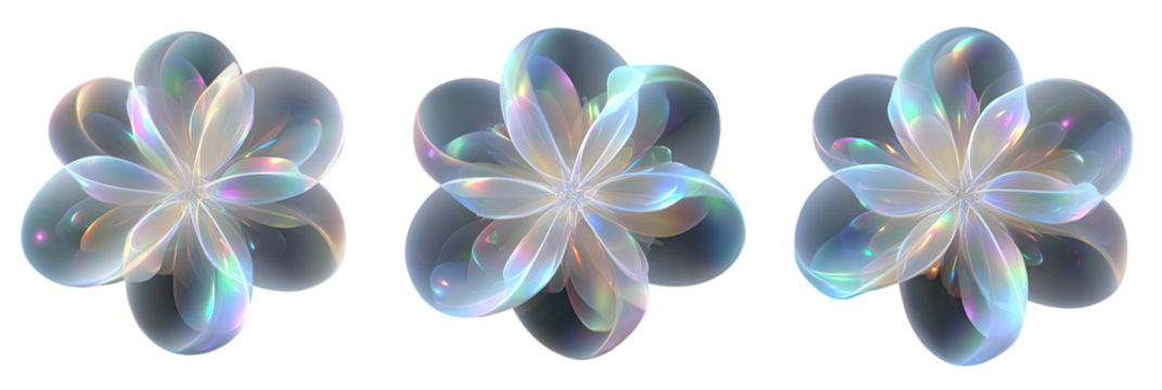 Abstract geometric crystal cluster with iridescent colors isolated on transparent background