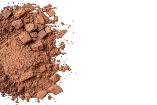 Chocolate powder and chunk isolated on transparent background food ingredient