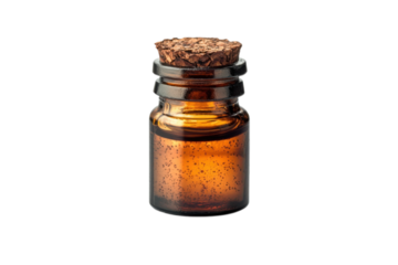 Natural small glass bottle of essential oil isolated on transparent background