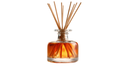 Elegant reed diffuser with aroma sticks, isolated on transparent background