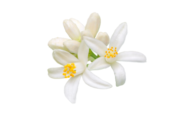 A beautiful cluster of fragrant white jasmine flowers with lush green leaves isolated on transparent background