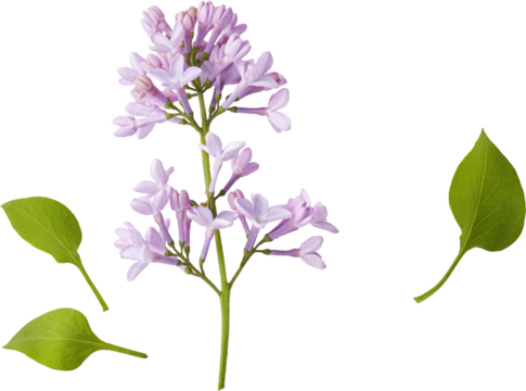 Branch of lilac flowers isolated. Lilac flowers with leaves.